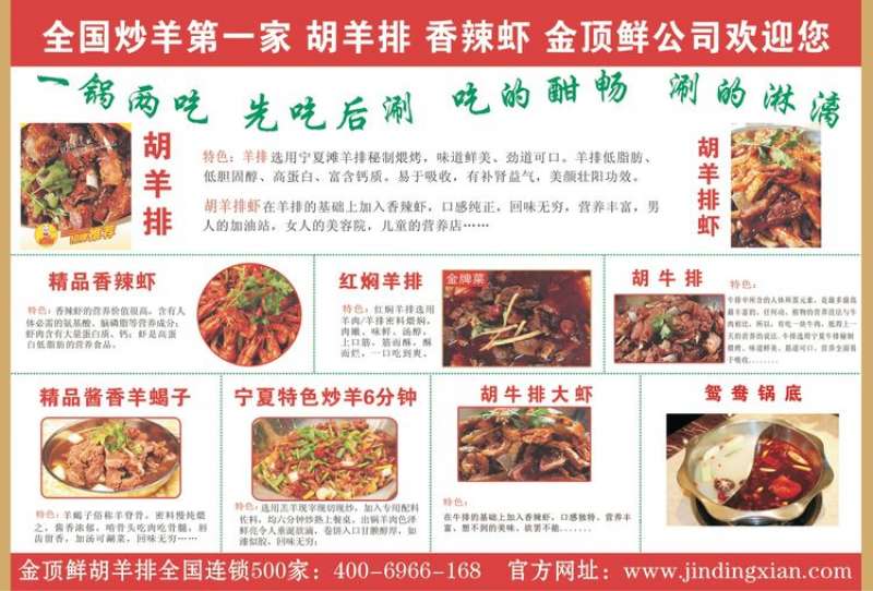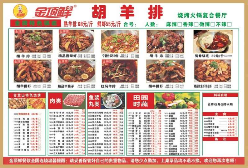 金頂鮮寧夏特色系列胡羊排燒烤火鍋復合餐廳2018年持續(xù)火爆招商開店中。